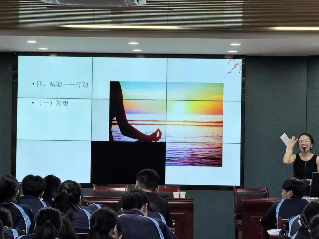 苏老师带领同学们进行冥想练习,引导他们暂时放下杂念、放松身心,在喧嚣的备考环境中寻得一方宁静的内在空间,缓解紧张情绪。